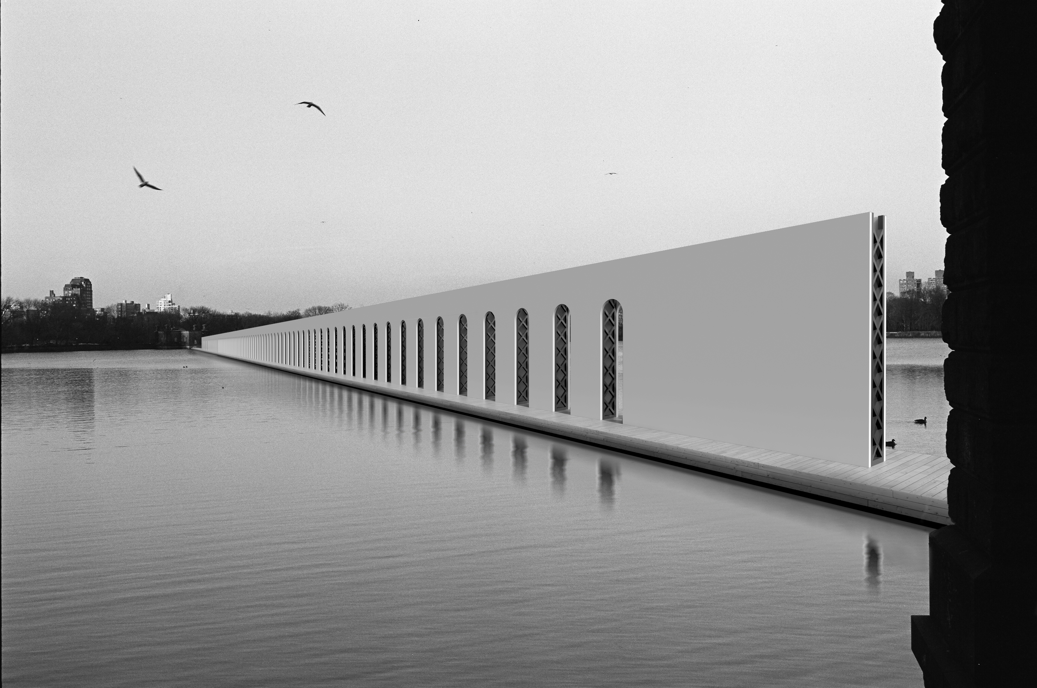Immersed in the lake, one of the few undeveloped areas in Manhattan, you can reflect on the irrationality of time, and the importance of the ruins.