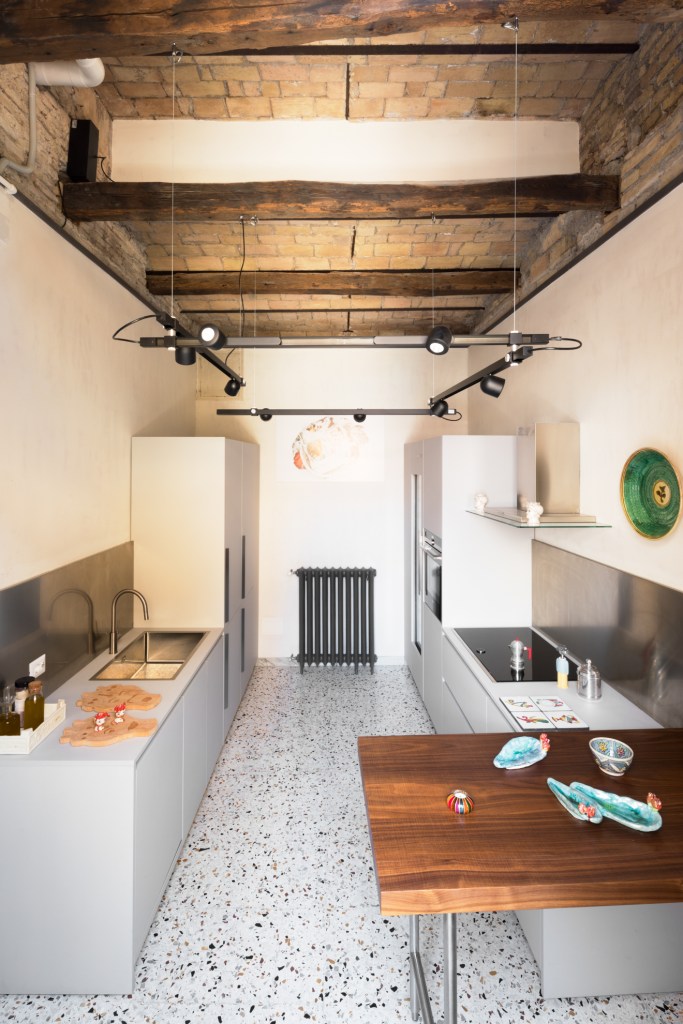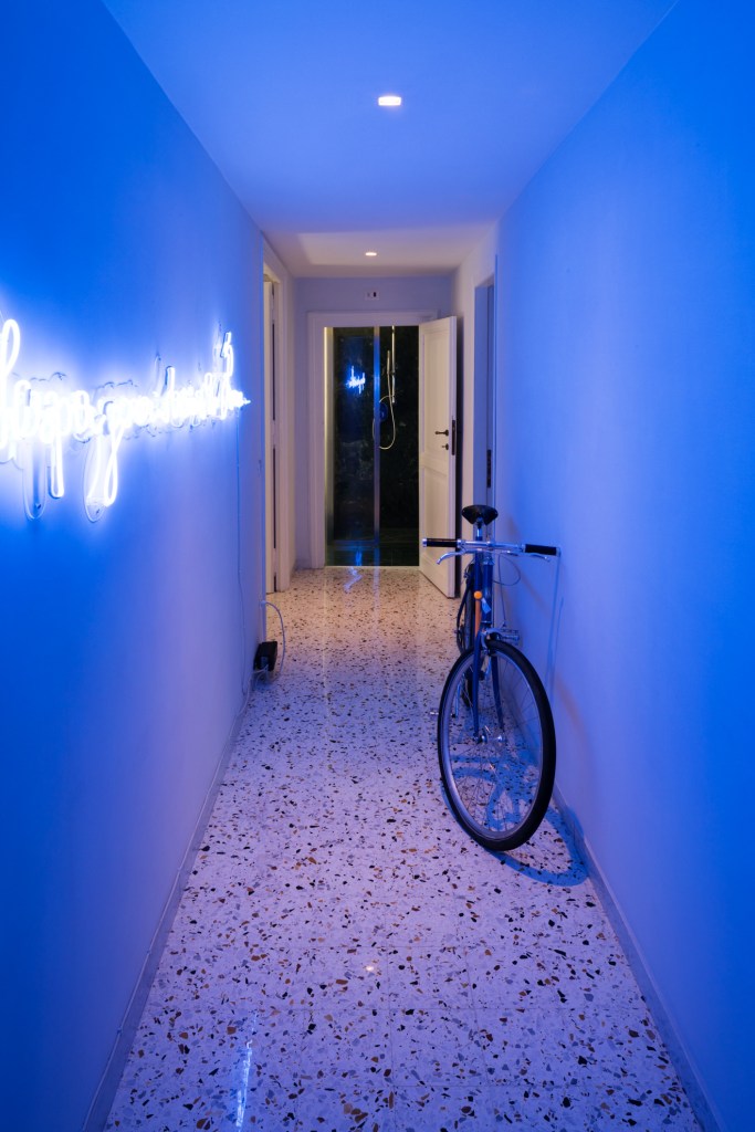 Consistent with the baroque ornamentation that characterizes Longhi’s façade, the apartment dialogues in a carefree way with the Roman world that surrounds and pervades it, showing off art installations, lighting fixtures, cult furnishings already known or site specific designed by us.