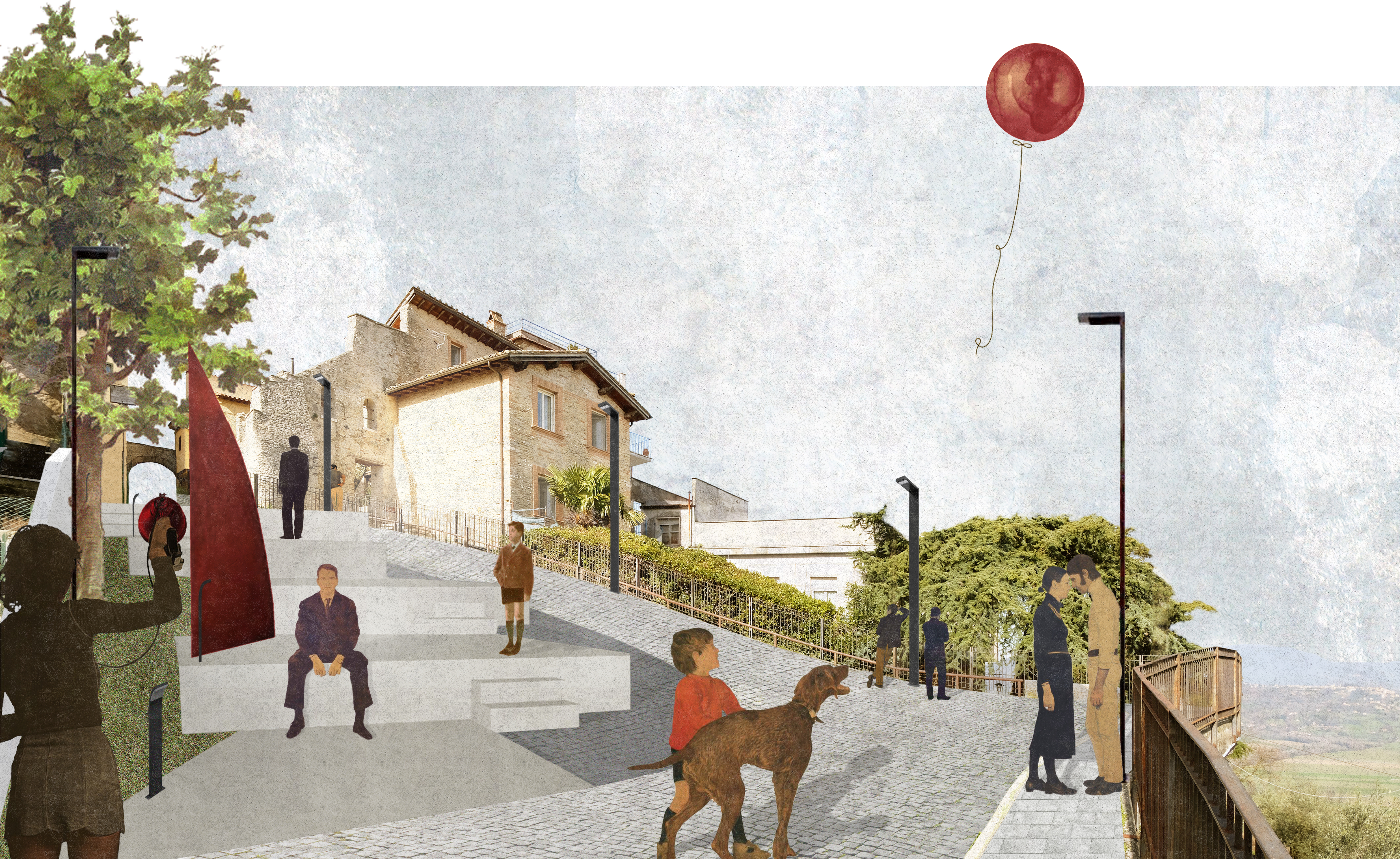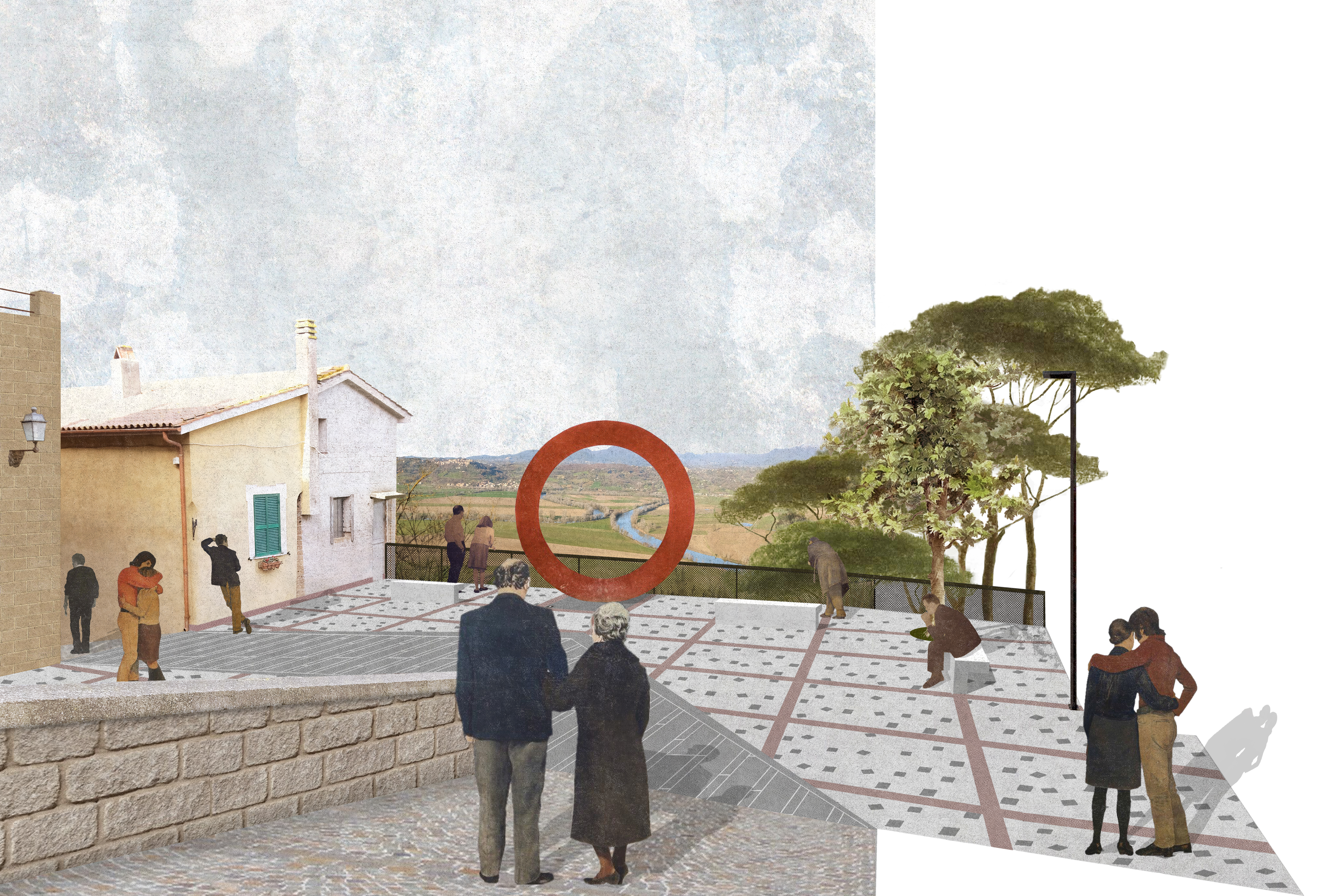 Si individuano i percorsi, intesi come congiunzioni, e i luoghi strategici, nei quali l’osservatore può entrare, e che sono i fuochi intensivi verso i quali e dai quali egli si muove; qui si concentrano le proposte di intervento architettonico. I luoghi diventano idonei ad essere vissuti come spazio pubblico e, in alcuni casi, risultano cruciali nel determinare quella relazione con il paesaggio circostante auspicata nella vocazione autentica del borgo.