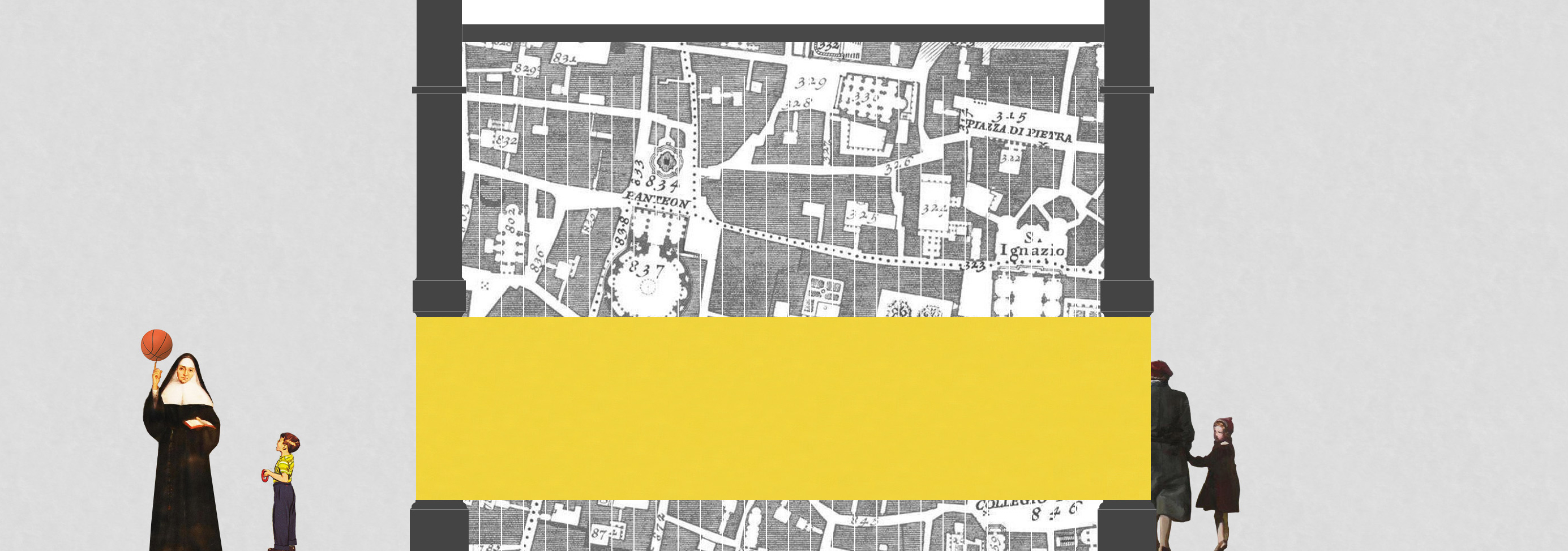 Nella prima sezione, cronaca, WAR adotta la tecnica del fotomontaggio, rielaborando la cifra estetica di una serie di interventi disseminati nella città di Roma, le cui generiche somiglianze parrebbero tradire un’implicita immagine coordinata a scala urbana, sulla scia di iniziative progettuali introdotte e provenienti da città altre. Prende forma così un’aggiornata Tavola degli Orrori, non in polemica contro un’azione progettuale attardata o poco aggiornata (obbiettivo dell’illustre precedente), ma riflettendo su di un’evidente omologazione linguistica, certamente slegata dal contesto d’azione e del tutto orfana di una credibile dimensione autoriale.