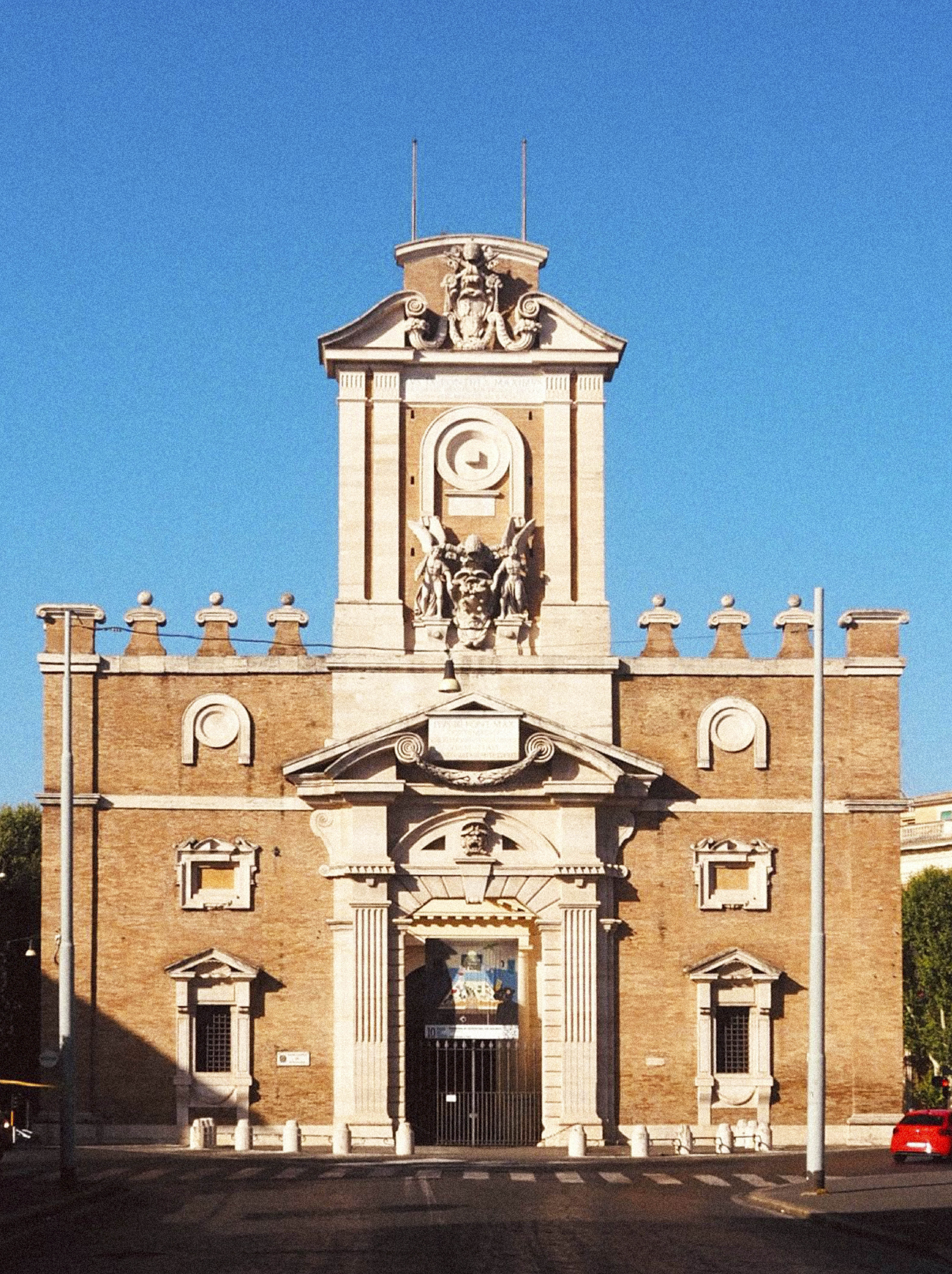 On ten historic gates of the Aurelian Walls, twenty banners featuring images of 21st-century Rome are displayed, created by 10 artists and 10 architectural studios from the latest generations.